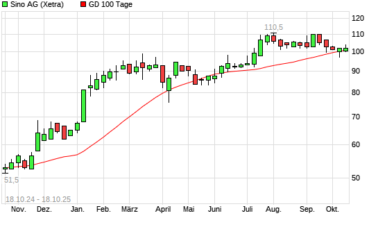 Mit dem Rücksetzer auf 100,00 EUR hat die Sino-Aktie am 17.10.2025 die 100-Tage-Linie nach unten gekreuzt.