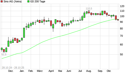 Mit dem Rücksetzer auf 93,40 EUR hat die Sino-Aktie am 27.10.2025 die 200-Tage-Linie nach unten gekreuzt.