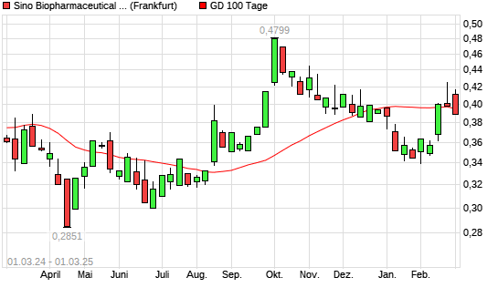 Mit dem Rücksetzer auf 0,39 EUR hat die Sino Biopharmaceutical-Aktie am 28.02.2025 die 100-Tage-Linie nach unten gekreuzt.