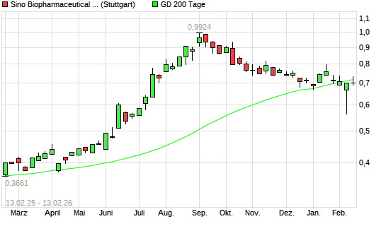 Mit dem Rücksetzer auf 0,70 EUR hat die Sino Biopharmaceutical-Aktie am 12.02.2026 die 200-Tage-Linie nach unten gekreuzt.