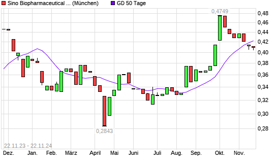 Mit dem Rücksetzer auf 0,40 EUR hat die Sino Biopharmaceutical-Aktie am 21.11.2024 die 50-Tage-Linie nach unten gekreuzt.