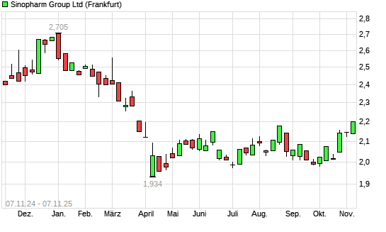 Mit dem Anstieg auf 2,20 EUR hat die Sinopharm Group Co-Aktie (ISIN CNE100000FN7) am 06.11.2025 ein neues 6-Monats-Hoch erreicht und damit den Kurs vom 05.11.2025 eingestellt.