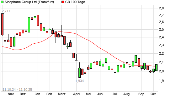 Mit dem Anstieg auf 2,07 EUR hat die Sinopharm Group Co-Aktie am 10.10.2025 die 100-Tage-Linie nach oben gekreuzt.