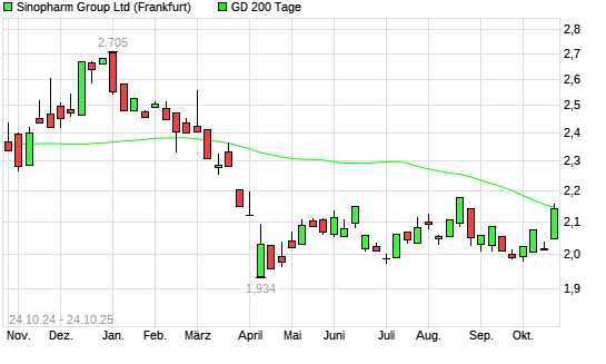 Mit dem Anstieg auf 2,14 EUR hat die Sinopharm Group Co-Aktie am 23.10.2025 die 200-Tage-Linie nach oben gekreuzt.Die Sinopharm Group Co-Aktie befand sich seit dem 04.03.2025 im langfristigen ...weiterlesen