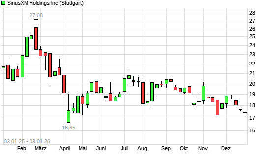 Mit dem Rücksetzer auf 16,80 EUR hat die SiriusXM Holdings [Common Shares]-Aktie (ISIN US8299331004) am 02.01.2026 ein neues 6-Monats-Tief erreicht und damit den Kurs vom 01.01.2026 eingestellt.