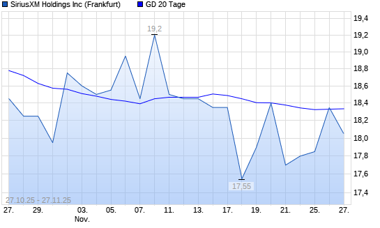 Mit dem Anstieg auf 18,35 EUR hat die SiriusXM Holdings [Common Shares]-Aktie am 26.11.2025 die 20-Tage-Linie nach oben gekreuzt.