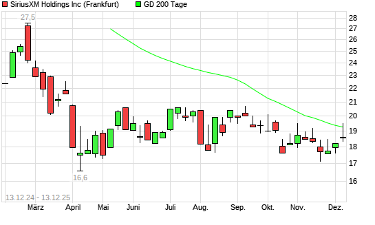 Mit dem Rücksetzer auf 18,55 EUR hat die SiriusXM Holdings [Common Shares]-Aktie am 12.12.2025 die 200-Tage-Linie nach unten gekreuzt.