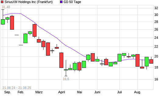 Mit dem Rücksetzer auf 19,35 EUR hat die SiriusXM Holdings [Common Shares]-Aktie am 20.08.2025 die 50-Tage-Linie nach unten gekreuzt.