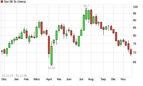 Mit dem Rücksetzer auf 69,15 EUR hat die Sixt St-Aktie (ISIN DE0007231326) am 20.11.2025 ein neues 6-Monats-Tief erreicht und damit den Kurs vom 18.11.2025 eingestellt.