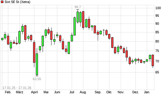 Mit dem Rücksetzer auf 68,05 EUR hat die Sixt St-Aktie (ISIN DE0007231326) am 16.01.2026 ein neues 12-Monats-Tief erreicht und damit den Kurs vom 15.01.2026 eingestellt.Die ...weiterlesen