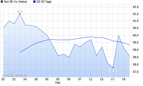 Mit dem Anstieg auf 59,90 EUR hat die Sixt Vz-Aktie am 19.02.2025 die 20-Tage-Linie nach oben gekreuzt.