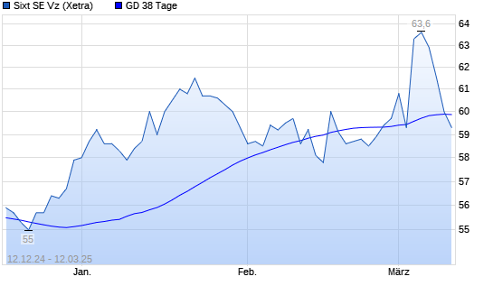 Mit dem Rücksetzer auf 59,60 EUR hat die Sixt Vz-Aktie am 11.03.2025 die 38-Tage-Linie nach unten gekreuzt.