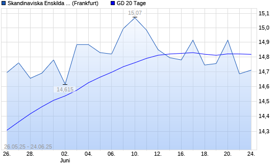 Mit dem Rücksetzer auf 14,69 EUR hat die Skandinaviska Enskilda Banken-Aktie am 23.06.2025 die 20-Tage-Linie nach unten gekreuzt.