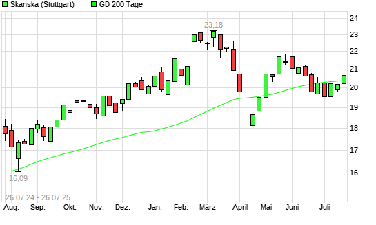 Mit dem Anstieg auf 20,51 EUR hat die Skanska-Aktie am 25.07.2025 die 200-Tage-Linie nach oben gekreuzt.