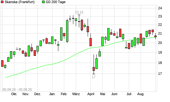 Mit dem Anstieg auf 21,05 EUR hat die Skanska-Aktie am 04.09.2025 die 200-Tage-Linie nach oben gekreuzt.
