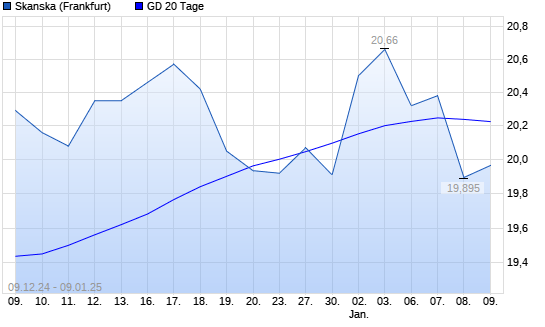 Mit dem Rücksetzer auf 19,90 EUR hat die Skanska-Aktie am 08.01.2025 die 20-Tage-Linie nach unten gekreuzt.