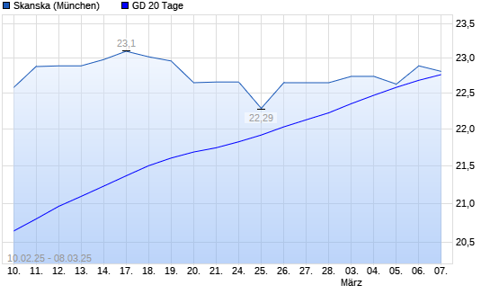 Mit dem Rücksetzer auf 22,41 EUR hat die Skanska-Aktie am 07.03.2025 die 20-Tage-Linie nach unten gekreuzt.