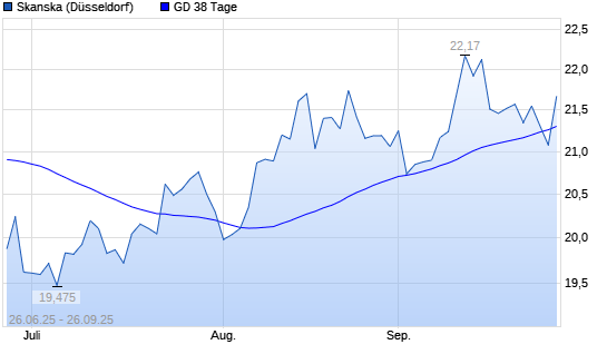 Mit dem Rücksetzer auf 21,01 EUR hat die Skanska-Aktie am 25.09.2025 die 38-Tage-Linie nach unten gekreuzt.