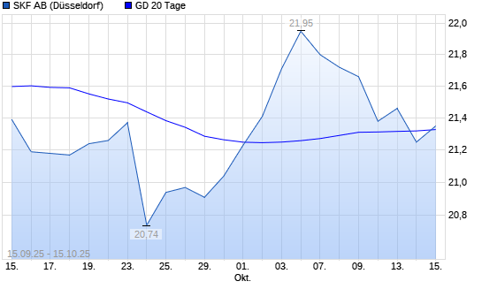 Mit dem Rücksetzer auf 21,29 EUR hat die Skf B-Aktie am 14.10.2025 die 20-Tage-Linie nach unten gekreuzt.