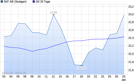 Mit dem Rücksetzer auf 22,42 EUR hat die Skf B-Aktie am 02.01.2026 die 20-Tage-Linie nach unten gekreuzt.