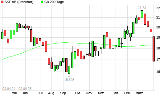 Mit dem Rücksetzer auf 17,85 EUR hat die Skf B-Aktie am 02.04.2025 die 200-Tage-Linie nach unten gekreuzt.