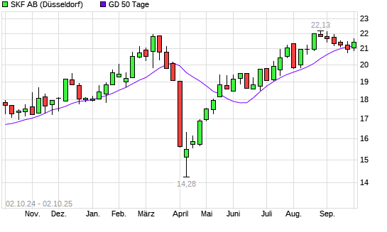 Mit dem Rücksetzer auf 20,89 EUR hat die Skf B-Aktie am 01.10.2025 die 50-Tage-Linie nach unten gekreuzt.