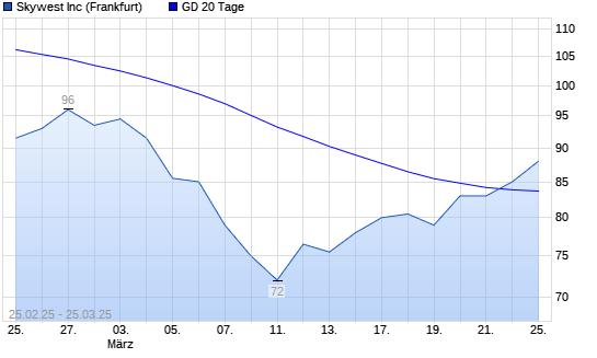 Mit dem Anstieg auf 85,00 EUR hat die SkyWest-Aktie am 24.03.2025 die 20-Tage-Linie nach oben gekreuzt.