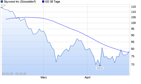 Mit dem Anstieg auf 80,00 EUR hat die SkyWest-Aktie am 02.05.2025 die 38-Tage-Linie nach oben gekreuzt.