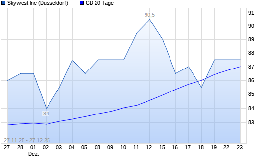 Mit dem Rücksetzer auf 88,00 EUR hat die SkyWest-Aktie am 26.12.2025 die 20-Tage-Linie nach unten gekreuzt.