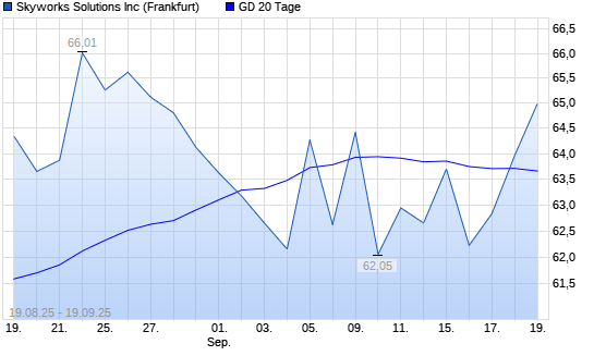 Mit dem Anstieg auf 63,96 EUR hat die Skyworks Solutions-Aktie am 18.09.2025 die 20-Tage-Linie nach oben gekreuzt.