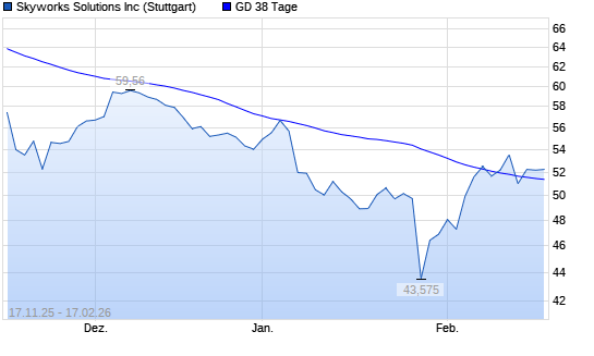 Mit dem Anstieg auf 52,23 EUR hat die Skyworks Solutions-Aktie am 16.02.2026 die 38-Tage-Linie nach oben gekreuzt.