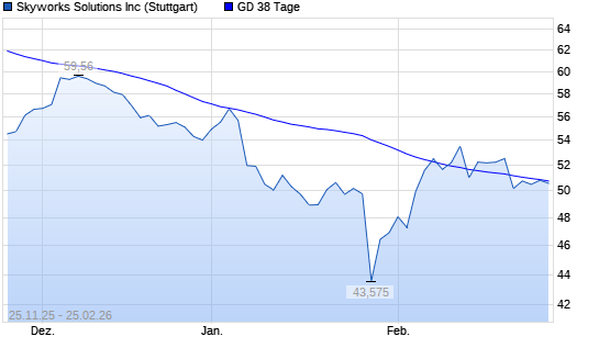 Mit dem Anstieg auf 51,54 EUR hat die Skyworks Solutions-Aktie am 24.02.2026 die 38-Tage-Linie nach oben gekreuzt.