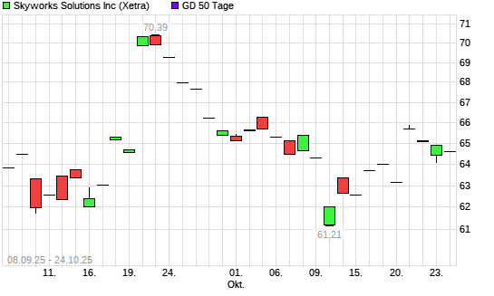 Mit dem Rücksetzer auf 64,13 EUR hat die Skyworks Solutions-Aktie am 23.10.2025 die 50-Tage-Linie nach unten gekreuzt.