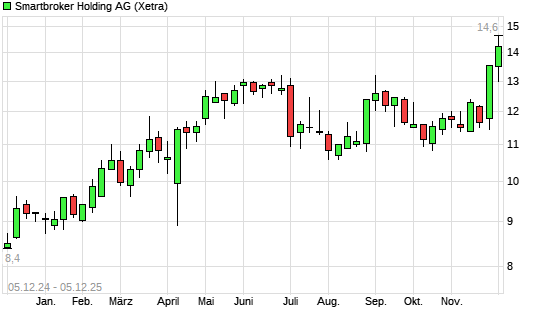 Mit dem Anstieg auf 14,25 EUR hat die Smartbroker (ex wallstreet:online)-Aktie (ISIN DE000A2GS609) am 04.12.2025 ein neues 3-Jahres-Hoch erreicht und damit den Kurs vom 03.12.2025 eingestellt.