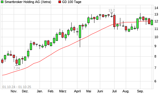 Mit dem Anstieg auf 12,05 EUR hat die Smartbroker (ex wallstreet:online)-Aktie am 30.09.2025 die 100-Tage-Linie nach oben gekreuzt.Die Smartbroker (ex wallstreet:online)-Aktie ...weiterlesen
