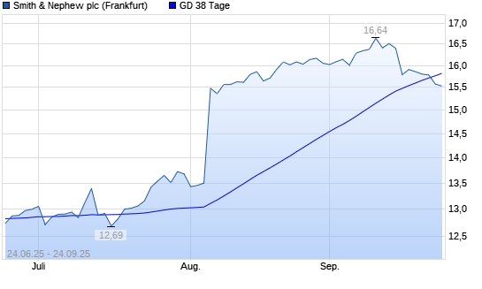 Mit dem Rücksetzer auf 15,57 EUR hat die Smith & Nephew-Aktie am 23.09.2025 die 38-Tage-Linie nach unten gekreuzt.