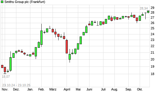 Mit dem Anstieg auf 28,28 EUR hat die Smiths Group-Aktie (ISIN GB00B1WY2338) am 22.10.2025 ein neues All-Time-High erreicht und damit den Kurs vom 20.10.2025 eingestellt.