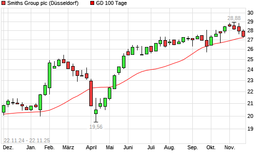 Mit dem Anstieg auf 27,52 EUR hat die Smiths Group-Aktie am 21.11.2025 die 100-Tage-Linie nach oben gekreuzt.
