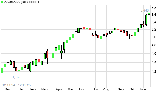 Mit dem Anstieg auf 5,68 EUR hat die Snam-Aktie (ISIN IT0003153415) am 11.11.2025 ein neues All-Time-High erreicht und damit den Kurs vom 27.05.2022 eingestellt.