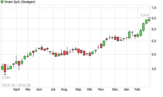 Mit dem Anstieg auf 6,46 EUR hat die Snam-Aktie (ISIN IT0003153415) am 24.02.2026 ein neues All-Time-High erreicht und damit den Kurs vom 23.02.2026 eingestellt.