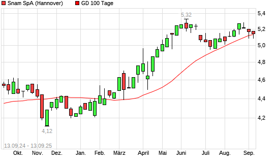 Mit dem Rücksetzer auf 5,11 EUR hat die Snam-Aktie am 12.09.2025 die 100-Tage-Linie nach unten gekreuzt.