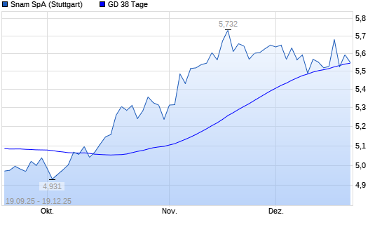 Mit dem Rücksetzer auf 5,55 EUR hat die Snam-Aktie am 18.12.2025 die 38-Tage-Linie nach unten gekreuzt.Die Snam-Aktie befindet sich seit dem 07.03.2025 im langfristigen ...weiterlesen