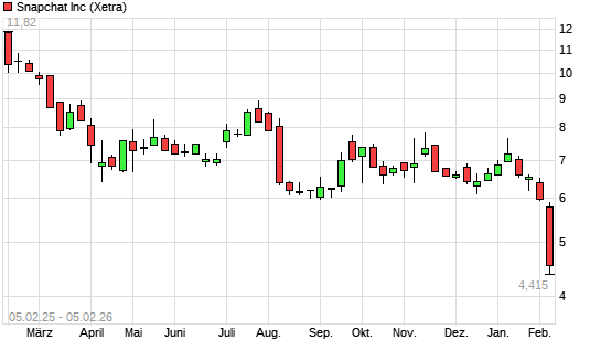 Mit dem Rücksetzer auf 5,16 EUR hat die Snap-Aktie (ISIN US83304A1060) am 04.02.2026 ein neues 5-Jahres-Tief erreicht und damit den Kurs vom 03.02.2026 eingestellt.