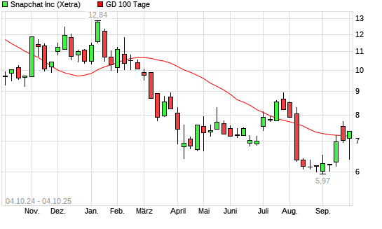 Mit dem Anstieg auf 7,21 EUR hat die Snap-Aktie am 03.10.2025 die 100-Tage-Linie nach oben gekreuzt.