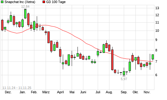 Mit dem Anstieg auf 7,23 EUR hat die Snap-Aktie am 10.11.2025 die 100-Tage-Linie nach oben gekreuzt.