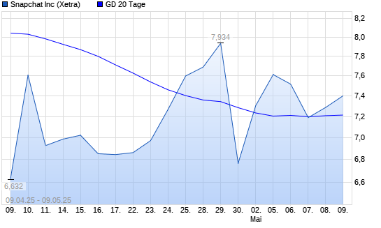 Mit dem Anstieg auf 7,35 EUR hat die Snap-Aktie am 08.05.2025 die 20-Tage-Linie nach oben gekreuzt.