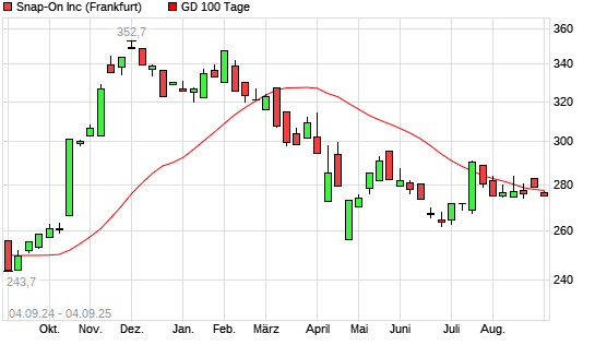 Mit dem Anstieg auf 277,00 EUR hat die Snap-On-Aktie am 03.09.2025 die 100-Tage-Linie nach oben gekreuzt.