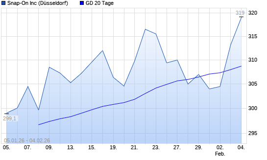 Mit dem Anstieg auf 312,90 EUR hat die Snap-On-Aktie am 03.02.2026 die 20-Tage-Linie nach oben gekreuzt.
