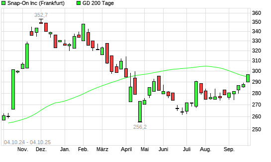 Mit dem Anstieg auf 296,70 EUR hat die Snap-On-Aktie am 03.10.2025 die 200-Tage-Linie nach oben gekreuzt.