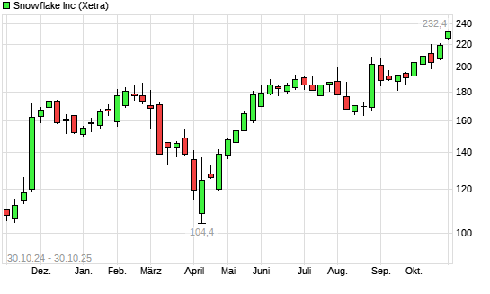 Mit dem Anstieg auf 231,70 EUR hat die Snowflake-Aktie (ISIN US8334451098) am 29.10.2025 ein neues 3-Jahres-Hoch erreicht und damit den Kurs vom 28.10.2025 eingestellt.